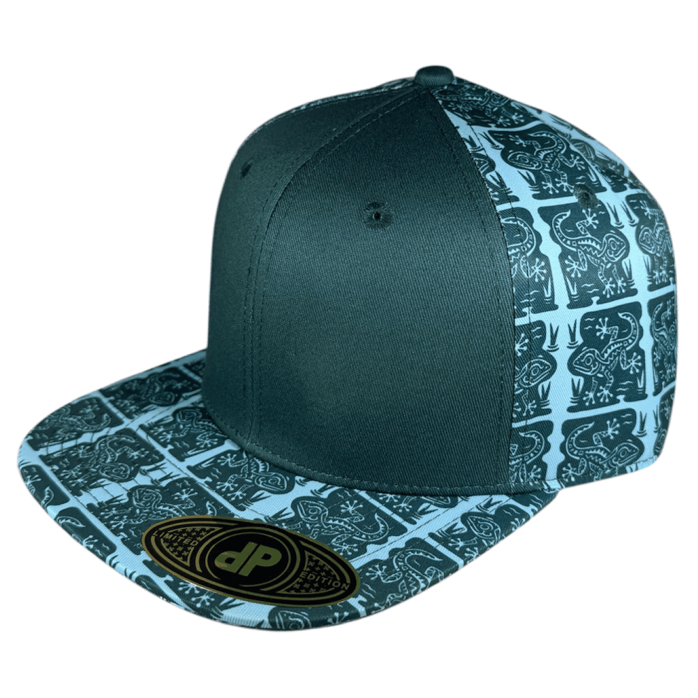 58cm Double Portion Supply snapback with jade front panels and sublimated Aztec Gecko
