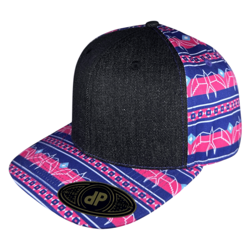 58cm Double Portion Supply snapback with black denim front panels and retro iwa sublimation