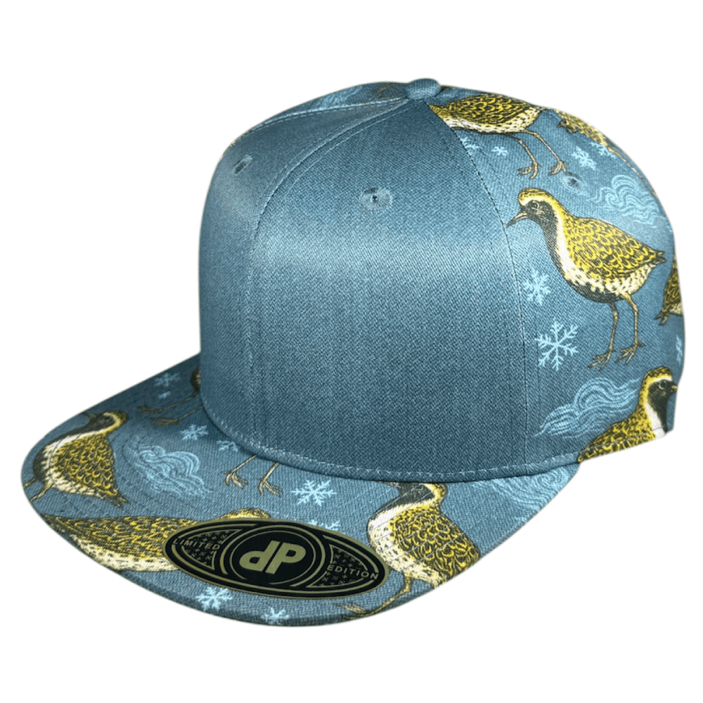58cm Double Portion Supply snapback with light blue sublimation with ocean, snow and Kolea birds (Pacific Golden Plover)